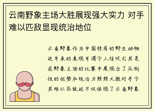 云南野象主场大胜展现强大实力 对手难以匹敌显现统治地位